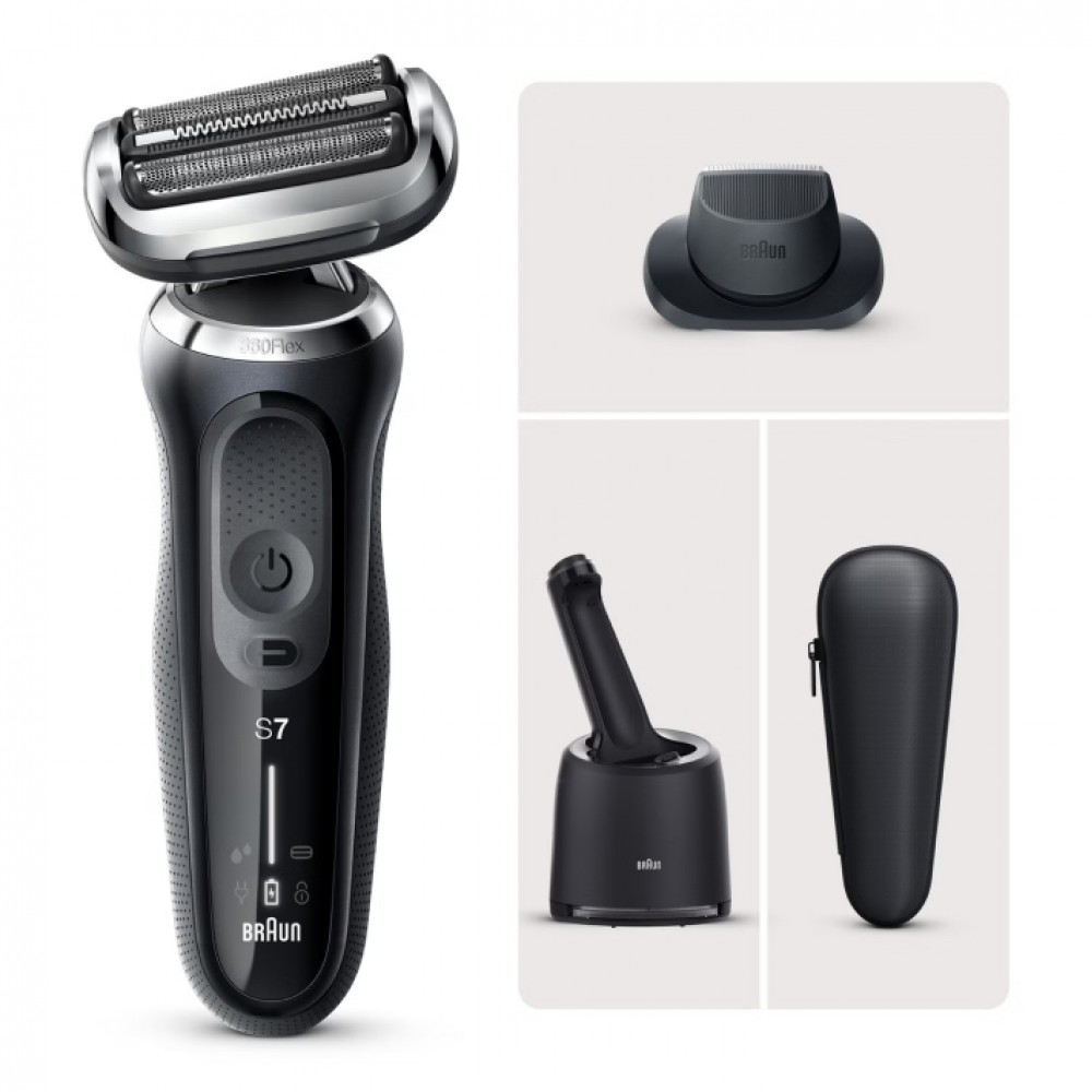 | Особенности | Электробритва Braun Series 7 71-S7200cc имеет полностью водонепроницаемый корпус, поэтому ее можно использовать для сухого и влажного бритья вместе с увлажняющим гелем или пеной для уменьшения раздражения кожи. Плавающая головка с сетчатыми лезвиями SensoFoil свободно вращается на 360 градусов, в точности повторяя все контуры лица. Интеллектуальная система AutoSense автоматически регулирует мощность устройства, в зависимости от нагрузки. Технология Microcomb позволяет захватывать больше волосков, направляя их к режущим ножам, благодаря чему процесс бритья занимает меньше времени. Особенности 3 бритвенных сетки; система Easy Click для быстрой смены насадок; информационный дисплей; чехол в комплекте. Бритва имеет эргономичный держатель изогнутой формы с прорезиненным антискользящим покрытием и оптимальным хватом, за счет чего ее удобно удерживать одной рукой и она не выскользнет из ладони при использовании в душе. Данная модель работает от встроенного аккумулятора, поэтому ее можно брать с собой в путешествие или командировку. Максимальное время автономной работы составляет 50 минут. Полного заряда хватит примерно на две недели. При этом восстановить в полном объеме ресурс аккумуляторной батареи можно всего за 1 час, а пятиминутной зарядки хватит на один полноценный цикл бритья. SmartCare Электробритва комплектуется многофункциональной портативной док-станцией, которая не только заряжает АКБ, но также увлажняет и очищает режущий блок, удаляя до 99% бактерий. |