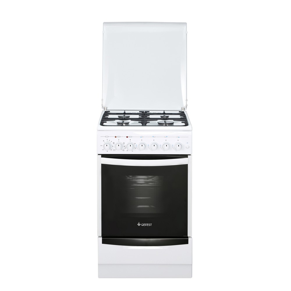 | Технические характеристики и особенности | Комбинированная плита белого цвета, ширина 50 см. Поставляется с металлической крышкой и выдвижным ящиком для хранения посуды. Четыре газовые горелки рабочего стола оснащены газ-контролем и электроподжигом (кнопка на панели управления). Установлены составные чугунные решетки. Духовка внутренним объемом 55 литров оснащена термостатом и электрическим грилем. При необходимости используется вертел, он - съемный. Сетевой шнур и вилка - в наличии. |