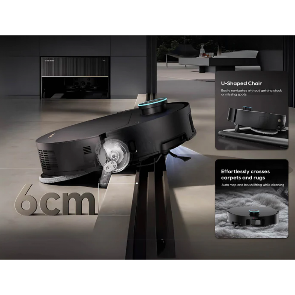 | ОсобенностиDreame X50 Master — это революция в мире роботов-пылесосов. Благодаря системе PowerDock 8-в-1 устройство полностью автономно: автоматически заправляет воду, сливает грязную жидкость, моет и сушит швабры. Базовая станция компактна (24.9 см в высоту) и легко вписывается в интерьер кухни, ванной или балкона. PowerDock - это не просто зарядка - это полноценная станция обслуживания! С всасыванием до 20000 Па и двойной турбощеткой HyperStream робот эффективно убирает даже глубоко въевшуюся грязь в коврах и щелях. Технология TripleUp разделяет сухую и влажную уборку: при мытье полов щетки поднимаются, а на коврах — швабра. Система ProLeap с выдвижными ножками позволяет преодолевать пороги до 6 см, а VersaLift опускает датчики для уборки под мебелью (высота 8.9 см). 3D-камера и ИИ распознают 200 типов объектов, включая провода и pet waste. Ключевые преимущества Автономность: Работа до 100 дней без обслуживания (контейнер 3.2 л + автодолив воды). Глубокая очистка: Двойные щетки для волос до 30 см и технология MopExtend для углов. Тихая работа: Уровень шума снижен на 20% благодаря амортизации ProLeap. Уход за коврами: 5 режимов (подъем швабры, обход, усиленное всасывание). Умный дом: Управление через приложение, голосовые ассистенты (Alexa, Google Home) и протокол Matter. |